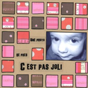 page de scrapbooking : c’était un scraplift d’une page de little angel, j’ai fait la folie d’accepter un scralift fou sur le forum totally scrap.