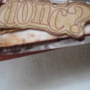 les coeurs, arabesques, tag et Belle découpés au CR les coeurs sont peint à la gouache et embossés à l’utee.