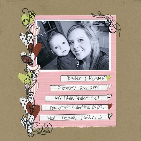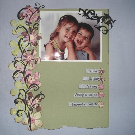 Ben oui, je ne suis pas franchement rose dans l’esprit, même si j’ai déjà utilisé cette couleur dans mes pages, le défi du 3è tour du tournois de mars m’imposait une dominante de rose (sur le forum scraptournois)