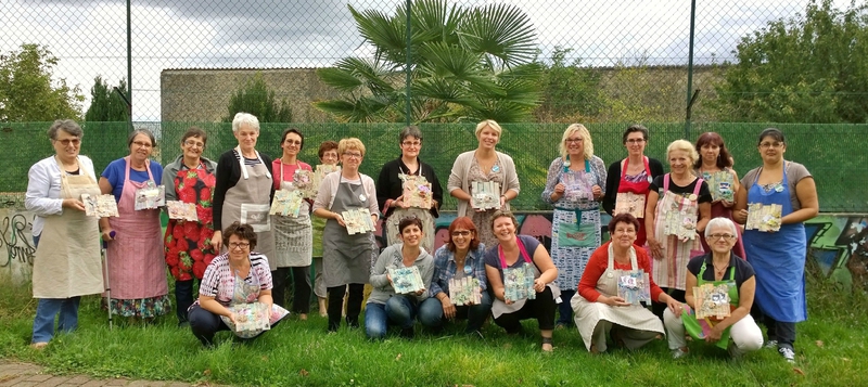 Puis il y a un an j’ai organisé la première crop peps and chalk et cette petite phrase « les mains pleines de patouille, une autre idée du bonheur » a surgit de ma tête. Je la trouvais jolie, et j’ai demandé à Alexis s’il accepterait de me faire une série spécialement pour moi et pour cette crop à offrir aux participantes.