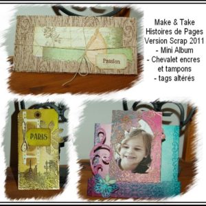 Je vous présente également le Make and take (un peu long pour un M&T) disons l’atelier que je proposais sur le salon version scrap en alternance avec les tags et le chevalet.