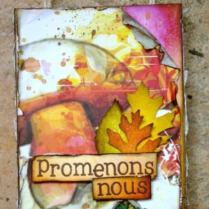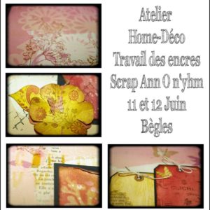 Nous travaillerons les encres sur chassis toilé et papier aquarellable, diverses techniques avec les encres Distress et Adirondack, aquarellées, à sec, avec les masks, de l’embossage à chaud, des tampons de la javel, des perfect pearl, enfin plein plein de choses.