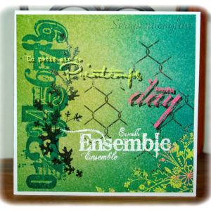 Une carte aux encres adirondack (décidément j’aime leur luminosité) tampons Tim holtz, Inkadinkadoo, florilège, Denim et les mots en scrap, poudres à embosser, Aladine et American craft.