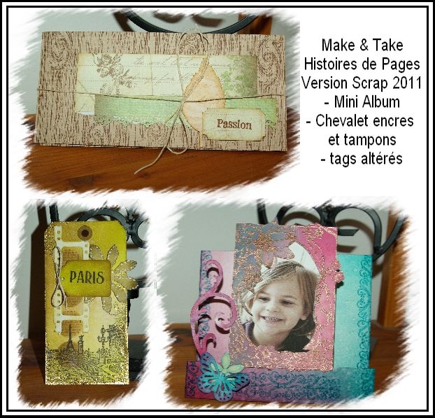 Je vous présente également le Make and take (un peu long pour un M&T) disons l’atelier que je proposais sur le salon version scrap en alternance avec les tags et le chevalet.