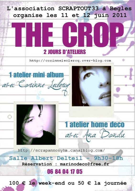 Enfin je vous montre le visuel de la crop que j’animerai avec Corinne Leclercq à Bègles les 11 et 12 juin prochain