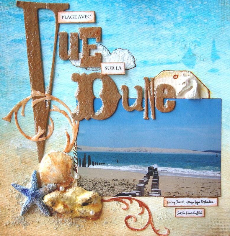 Cette page a été travaillée sur toile collée avec des encres à dessiner (donc aquarellables) du gesso, du gel medium du mortier, du gel irridescent et les embellissements (donc les coquillages) on été entièrement fait maison avec de la bande platrée sur la base de vrais coquillages trouvés sur la plage.