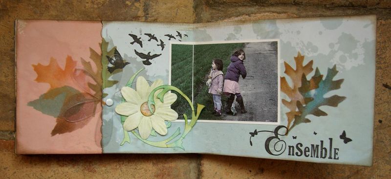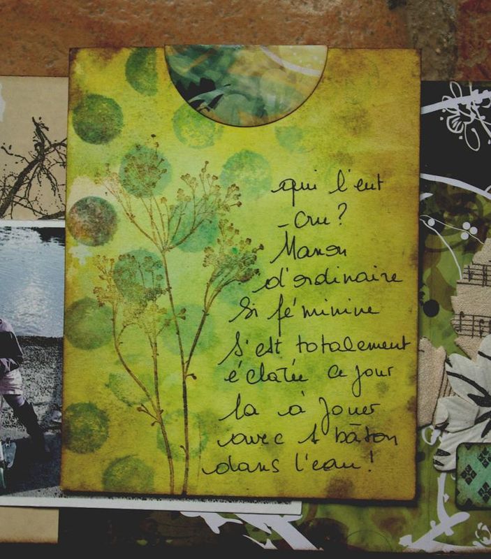 Les pages collées entre elles j’ai tenté de sauver les meubles mais impossible, tout s’arrachait. j’ai donc rappelé Christine en catastrophe qui a eu la gentillesse de me renvoyer un jeu de feuilles pour que je le refasse (j’ai pu récupérer les embellissements même si certains se sont habimés en se décollant)