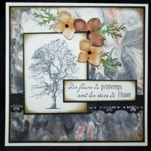 une petite carte avec les tampons de la dernière série l’encre et l’image.