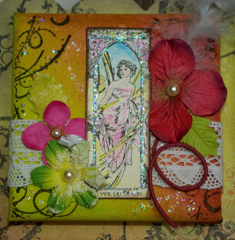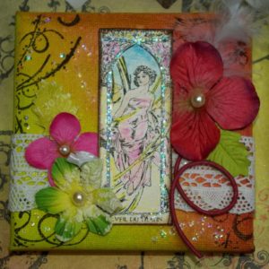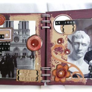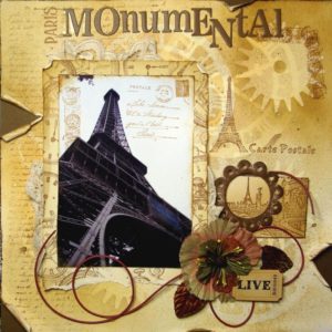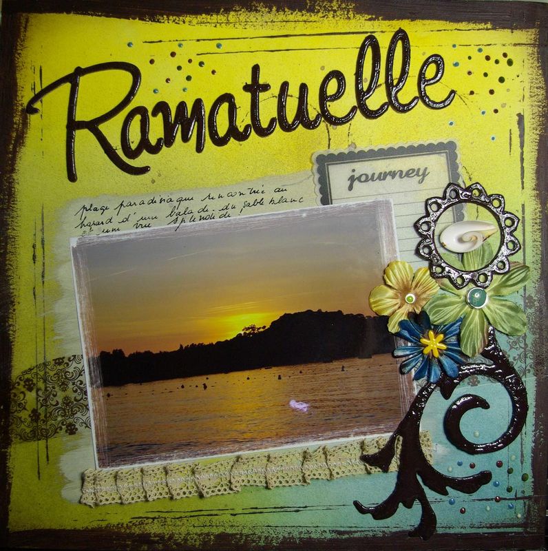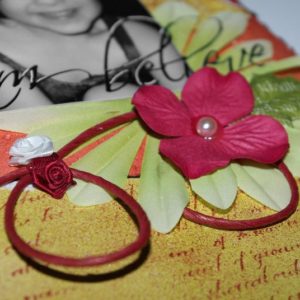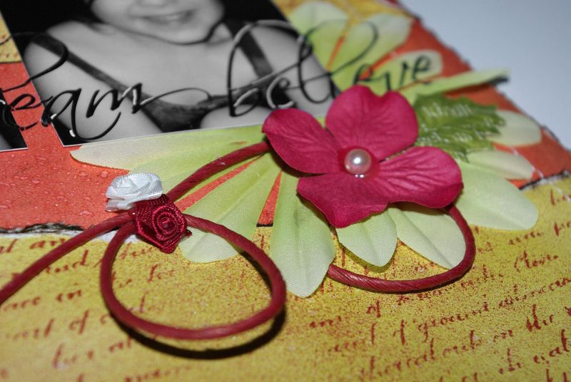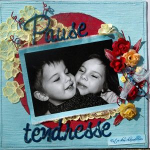 à part ça 3 nouvelles pages la première pour Camayon, Carole m’a fait l’immense plaisir de m’envoyer des tous nouveaux produits Prima, donc ces merveilleuses fleurs, ces magnifiques dentelles mais surtout, ce papier aye aye aye !!!