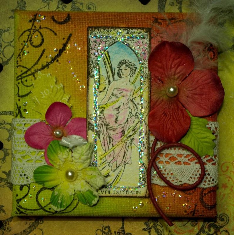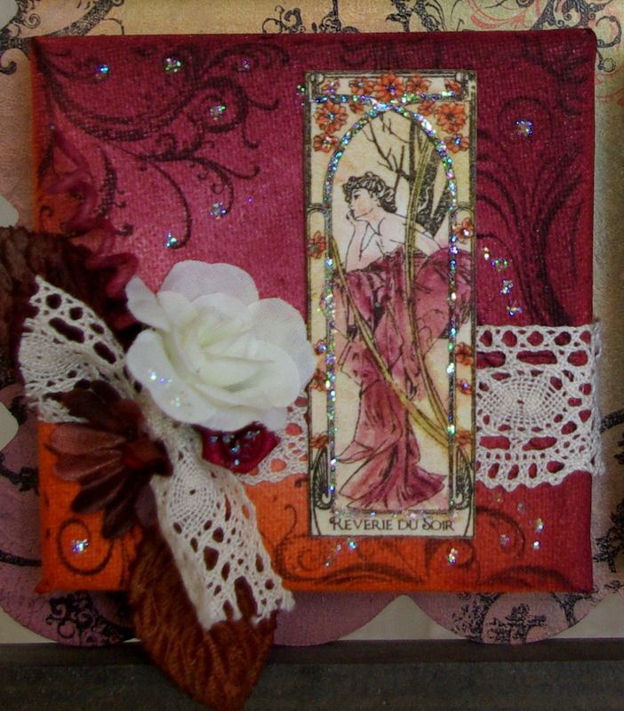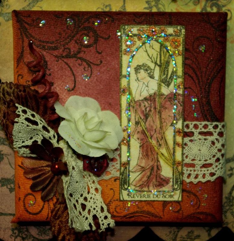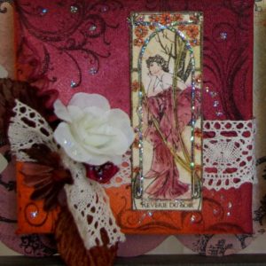 Papiers Prima My love, fleurs prima, dentelle prima, tampons Autumn leaves et My minds eye, thickers american craft et étiquette Tim holtz.