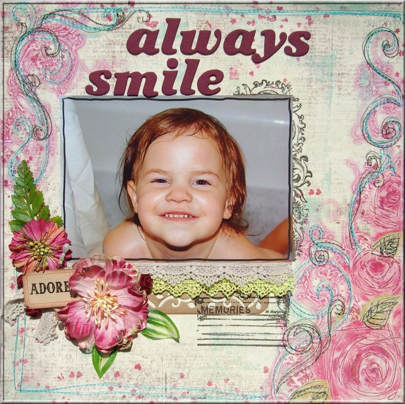 Voici ma page, avec, une fois de plus, un fond 100% maison aux encres dye