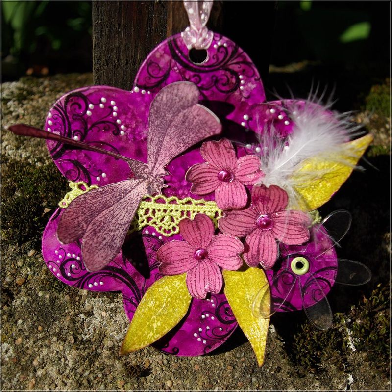 Du coups le printemps fait penser aux fleurs, ça tombe bien j’en ai une à vous présenter. Manon m’a demandé une petite déco pour mettre au dessus de son lit… en rose bien sûr 🙂 alors j’en ai profité pour tenter une petite expérience ma foi très concluante avec les encres alcool et le tamponnage.
