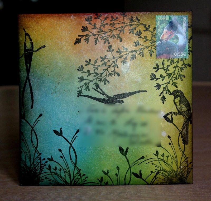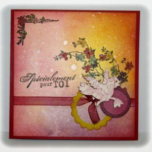 C’était d’ailleurs mon tour cette semaine, et je vous propose une page 100% encre dye pour le fond, et tampons katzelkraft bien sûr.