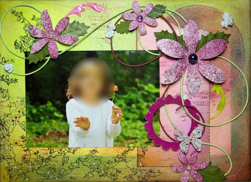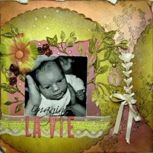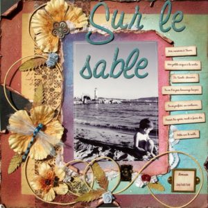 Bon toujours est-il que j’ai continué dans ma lancée fleurs rosace et cordeline avec ce canvas qui ne contient pas de photo puisque j’ai utilisé le stystème de la pince 🙂