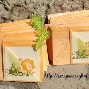 Je peux enfin vous révéler ce qui m’a tenu pas mal éloignée du scrap et de vos blogs surtout durant l’été : une commande de 60 faire-part de naissance !