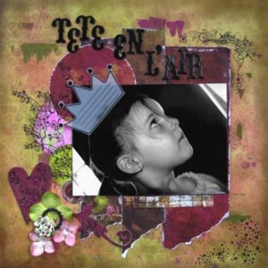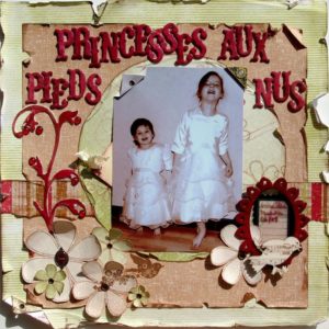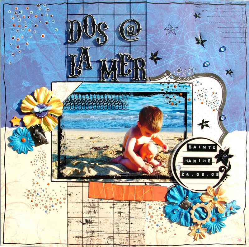enfin une petite page commencée avec le kit de survie que j’avais emmené en vacances (mais à peine commencée en fait, j’ai eu peu de temps pour scrapper)