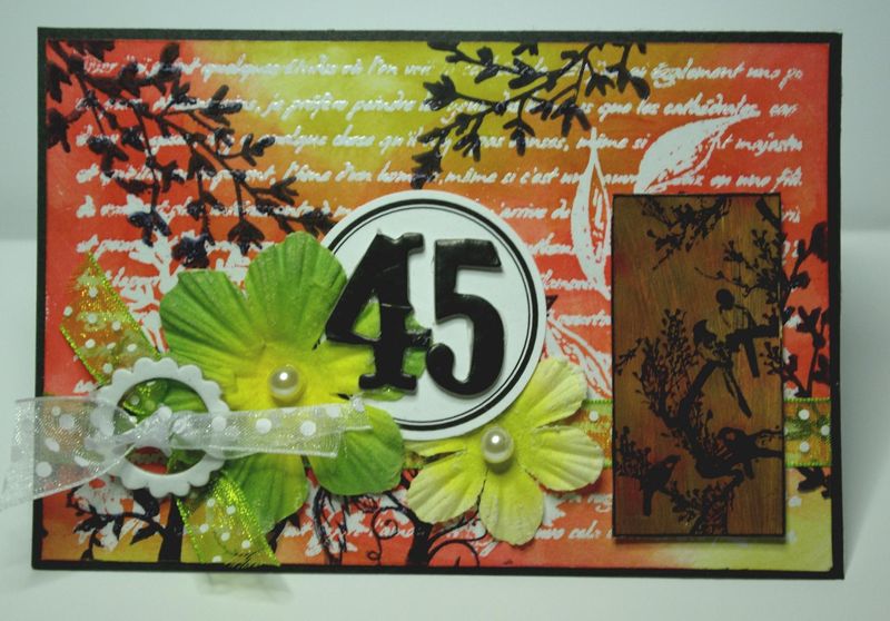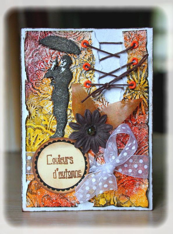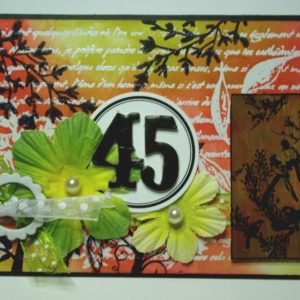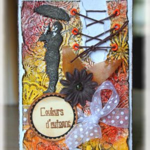 la base est un bazzill avec pliage découpe que j’ai aquarellé avec des glimmer mist peach delight avec un cut and dry foam.