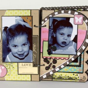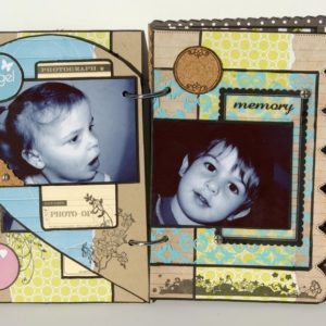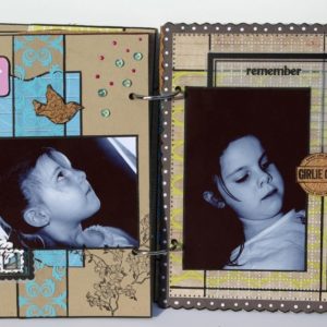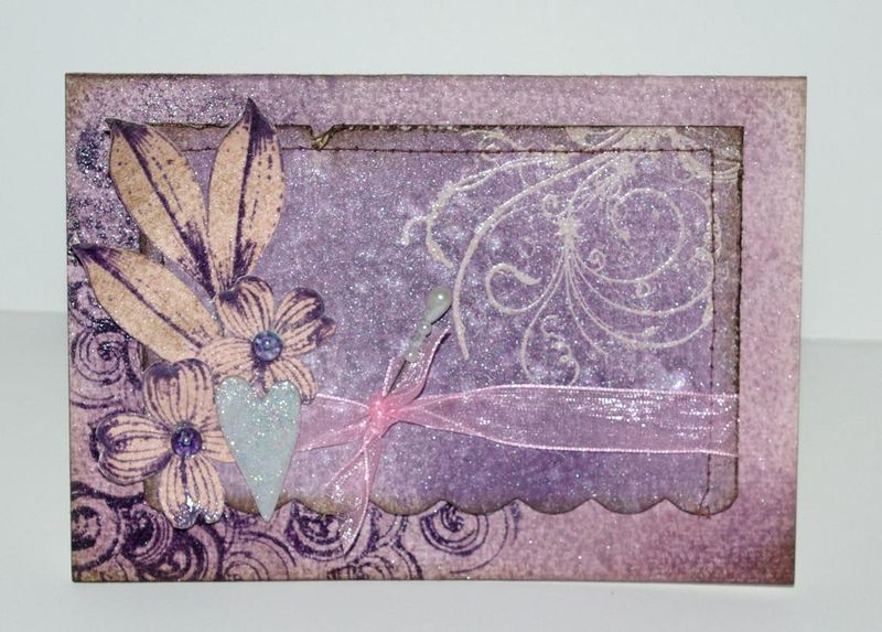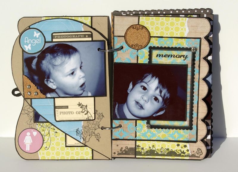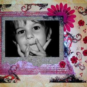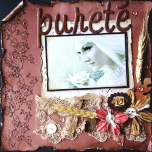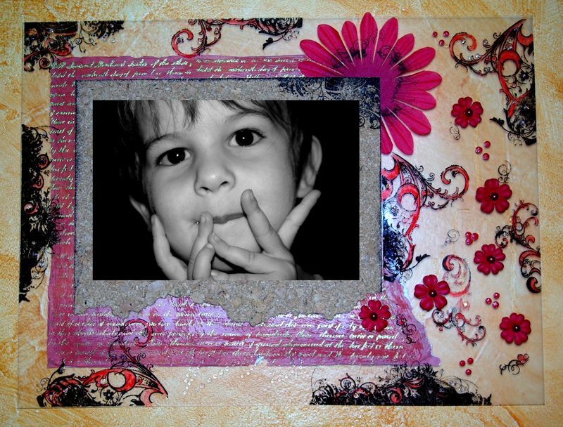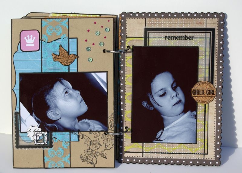 Papier Kraft les élucubrations de séverine, y compris le brun dans lequel j’ai découpé le fond. papier Bobuny (collection… je ne sais plus lol) tampons purple onion et frantic stamper, ruban mettre 7 gypsies, ruban rose gifi, Chipboard alphabet Heidi swapp, chipboard cadre Maya road, et l’oiseau est un glimmer chip, (chipboards de tattered angel)