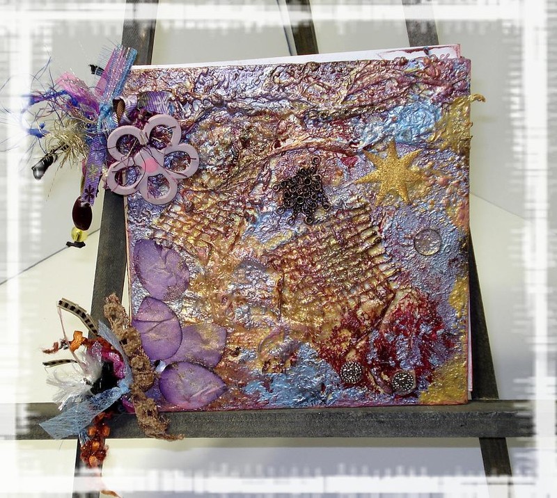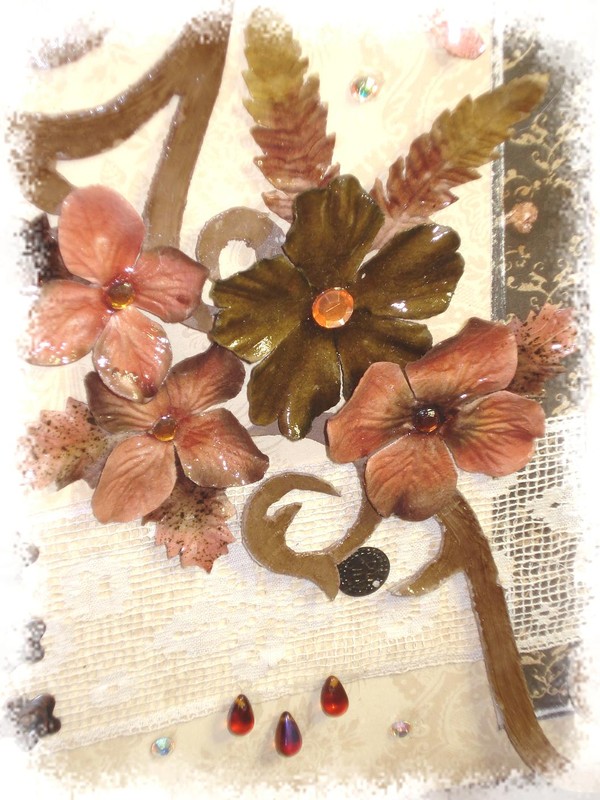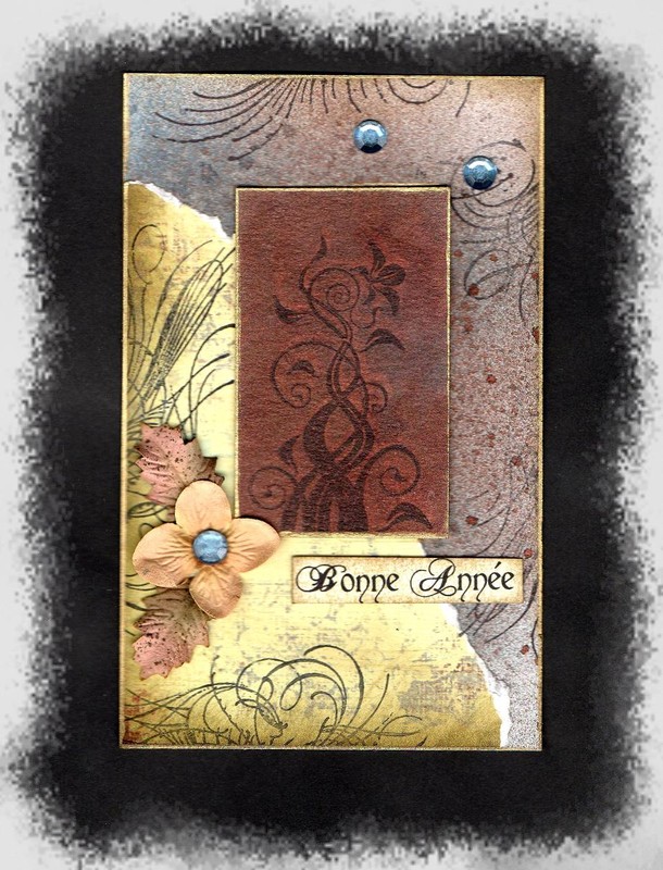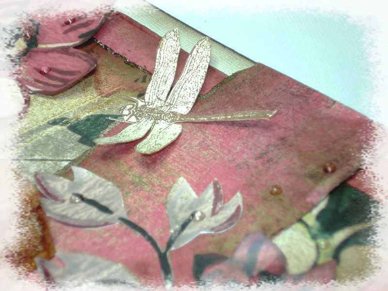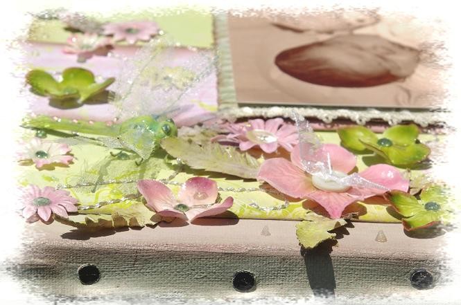 j’ai travaillé le fond avec de la peinture cracle old paper et j’ai légèrement encré dans un vieux rose.