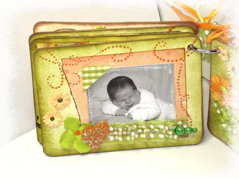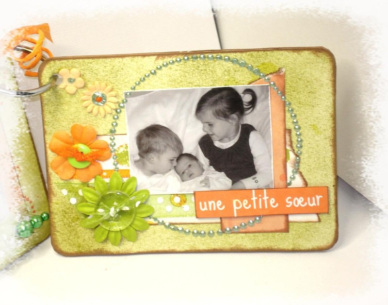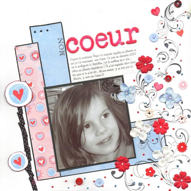 Apprenant que je faisais du scrapbooking, Dame Brigitte s’est mise à fouiller dans toutes ses accumulations d’années de chinage et à me faire passer des perles, de la dentelle, des boutons, des breloques que je sème sur mes pages avec un immense plaisir puisque ce sont des accessoires qui ont vécu.