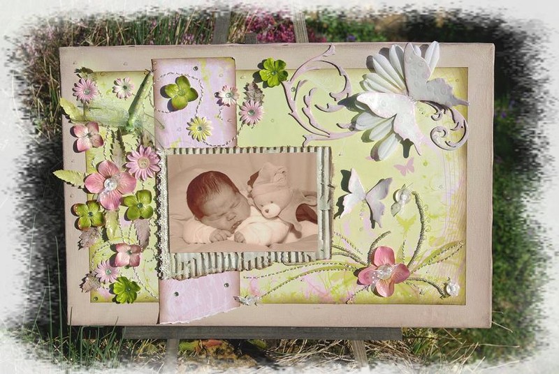 La recette n’est pas forcément nouvelle je suis dans ma période fleurs à gogo, et comme c’est un bébé du printemps, un canvas printanier était de bon ton je pense.