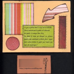 – Vous pouvez dessiner, imprimer, toutes les techniques et matériels (embellissement) scrap utilisés sont libres