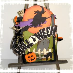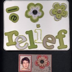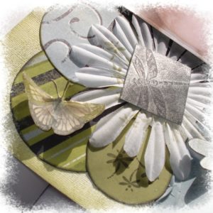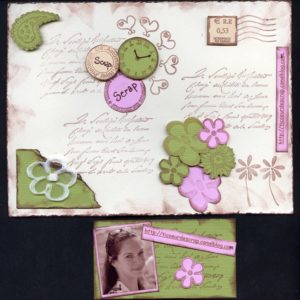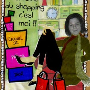 ah comme le format était libre et que malgré ma bonne volonté je n’y arrivais pas en format carte j’ai fait une carte 30 X 30 mdr !!! donc avec la photo de ma co-équipière… Thème choisi le shopping au féminin…