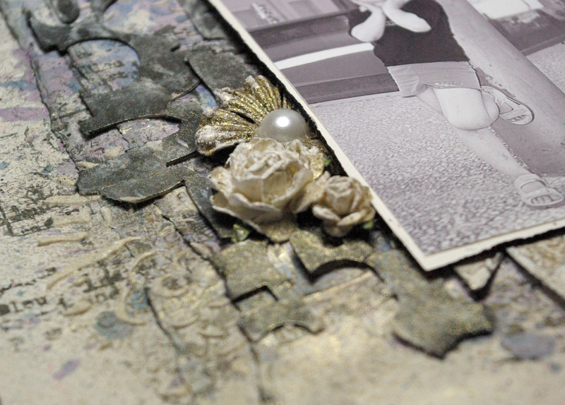 Rendez-vous samedi 8h30 une salle superbement installée où nous attendaient café, thé et viennoiseries, et sur nos tables une enveloppe pleine de surprises, des découpes, des papiers vintages, des breloques et autres petits embellissements, un vrai petit kit en somme.