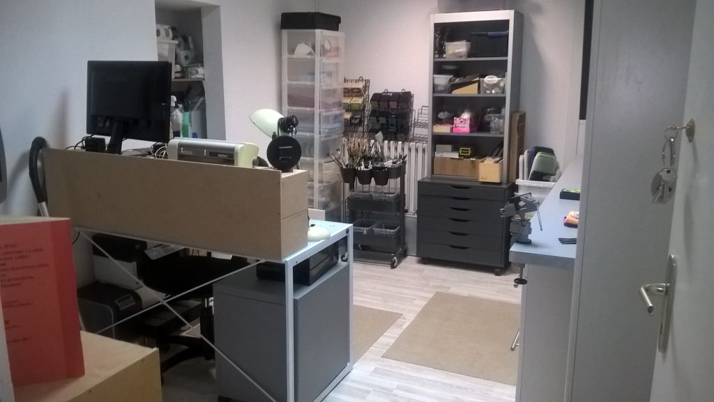 Un atelier où il doit être bien agréable de créer !!! Surtout quand il s’agit d’un vrai espace dédié et pas un petit bout de la maison (salon ou chambre)…Enfin un espace rien qu’à toi! Bravo!